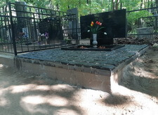 На данном месте захоронения нам предстояло провести следующие работы: поставить на место покосившийся памятник и положить на территорию участка гранитную брусчатку.