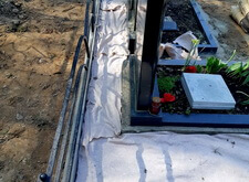 Затем мы закрыли площадь могилы геотекстилем. Это позволяет предотвратить прорастание травы через стыки между плитками.
